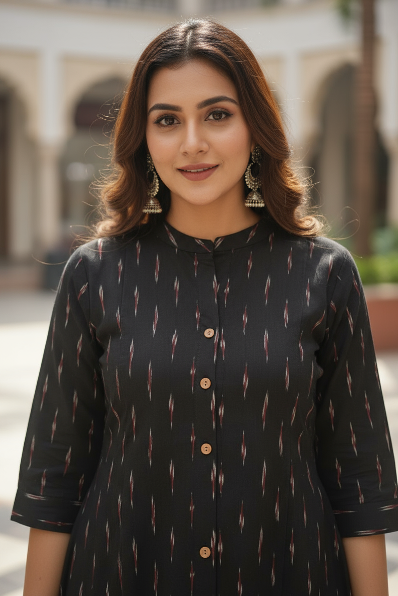 Pattern : Aline Type Kurti With Centre Button (Non Detachable)