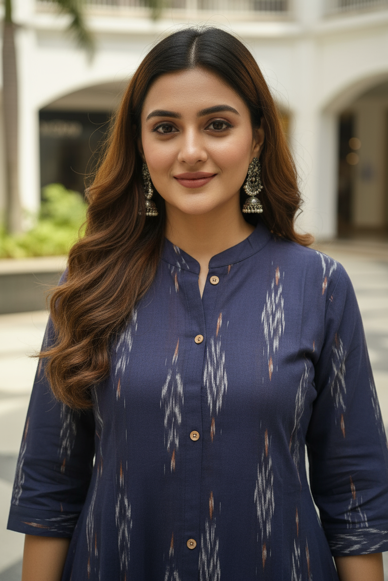 Pattern : Aline Type Kurti With Centre Button (Non Detachable)