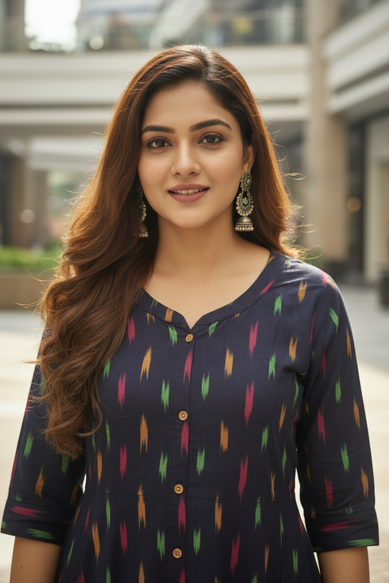 Pattern : Aline Type Kurti With Centre Button (Non Detachable)