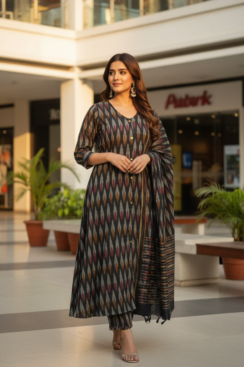 Pattern : Aline Type Kurti With Centre Button (Non Detachable)